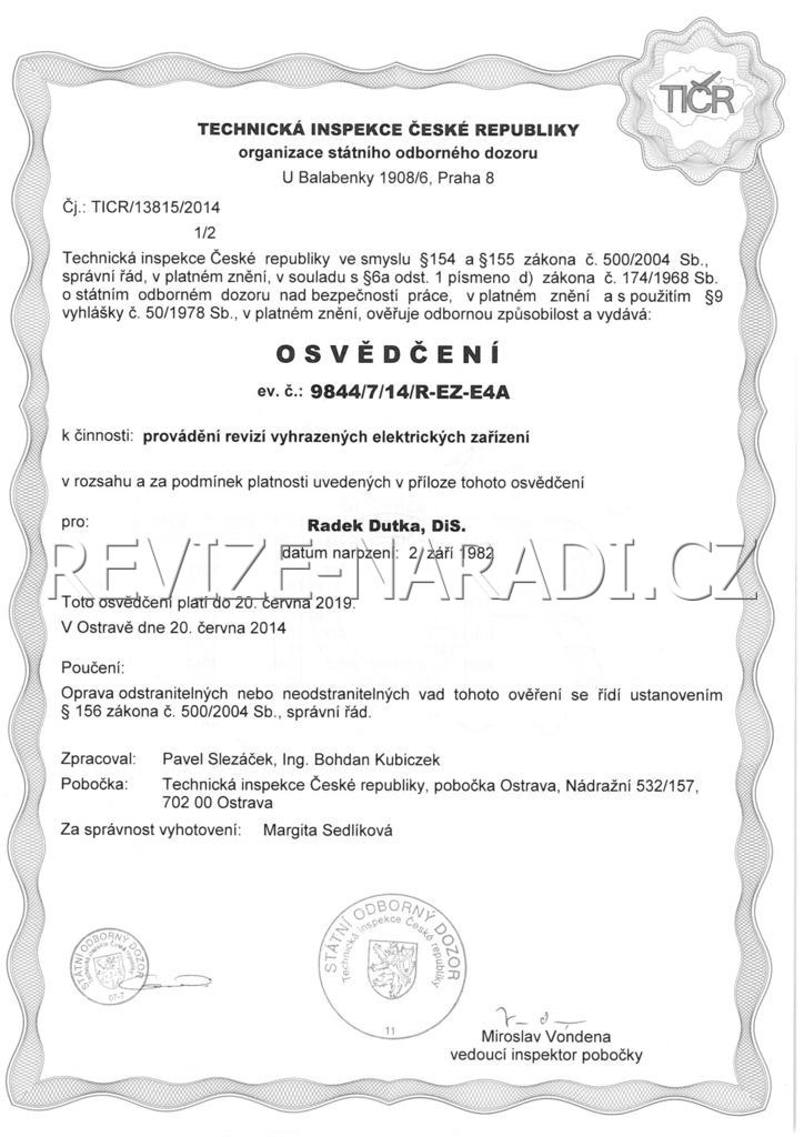 Vlastníme oprávnění k provádění revizí vyhrazených elektrických zařízení - E4A elektrické nářadí a spotřebiče